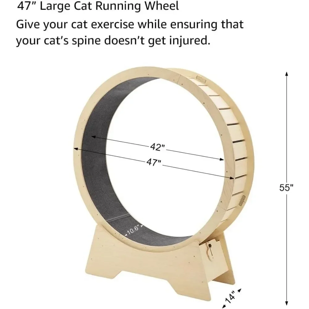 - PROTECT YOUR CAT’S SPINE: specially designed 47″ large cat wheel to give your cat exercise while ensuring that your cat’s spine doesn’t get injured. If the diameter of the cat wheel is too small, the curvature of your cat’s spine will be dangerous. Please purchase your wheel based on cat length, not age or weight. A 47″ diameter or larger cat wheel is the only safe cat wheel for your cat.