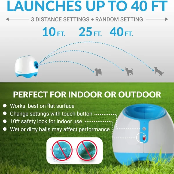 Automatic Ball Launcher for Medium to Large Dogs, Indoor and Outdoor, Includes 3 Standard Size Tennis Balls