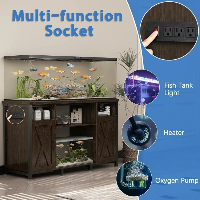 - 【Charging Stations】Keeping fish has a lot of electrical devices and you need to provide power for them. Our fish tank cabinet solves this problem for you. It has a built-in charging station with three three-hole AC outlets, allowing you to charge heater rods, filters, LED lights, and other devices as you wish.