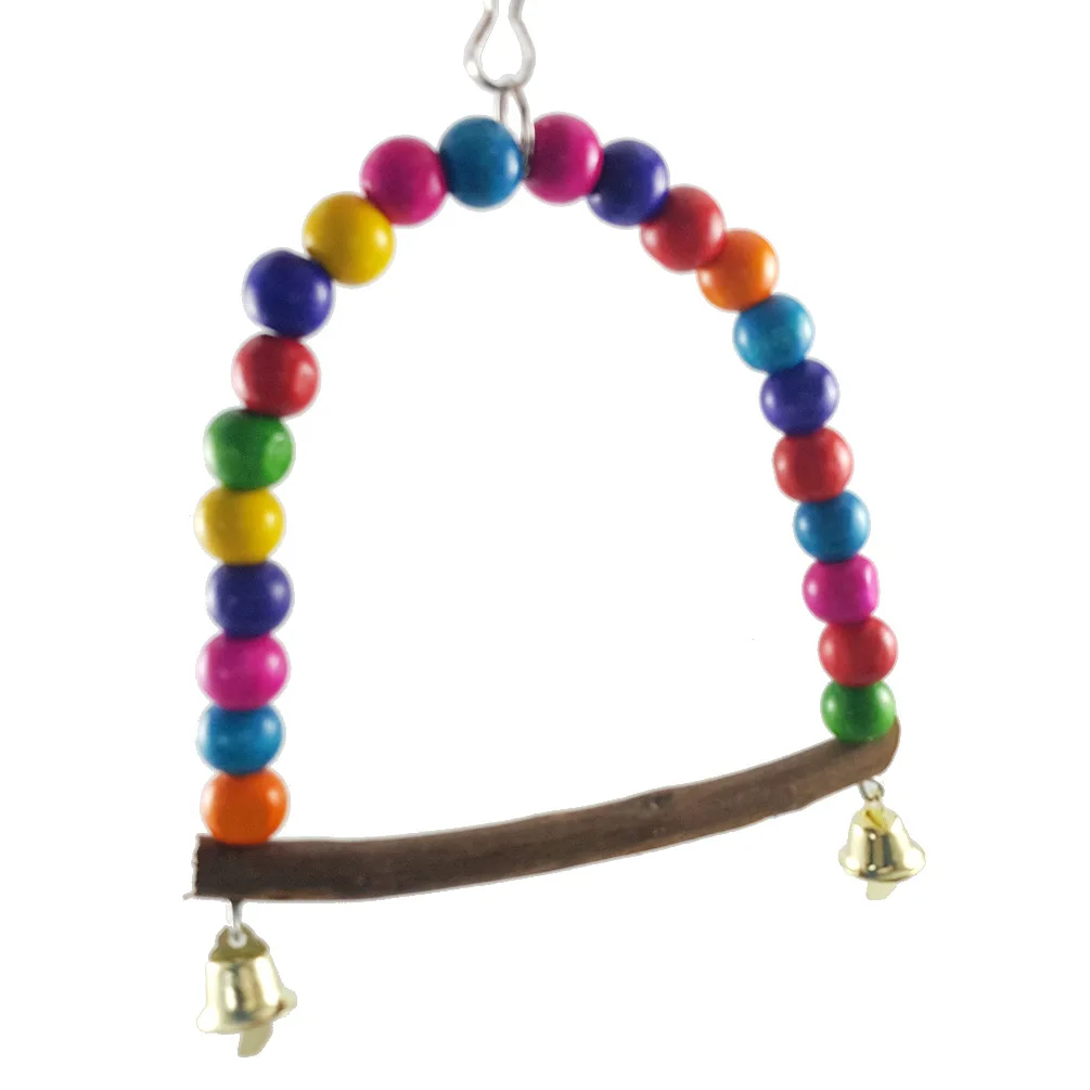 1PC Natural Wooden Parrots Swing Toy Birds Colorful Beads Bird Supplies Bells Toys Perch Hanging Swings Cage for Pets