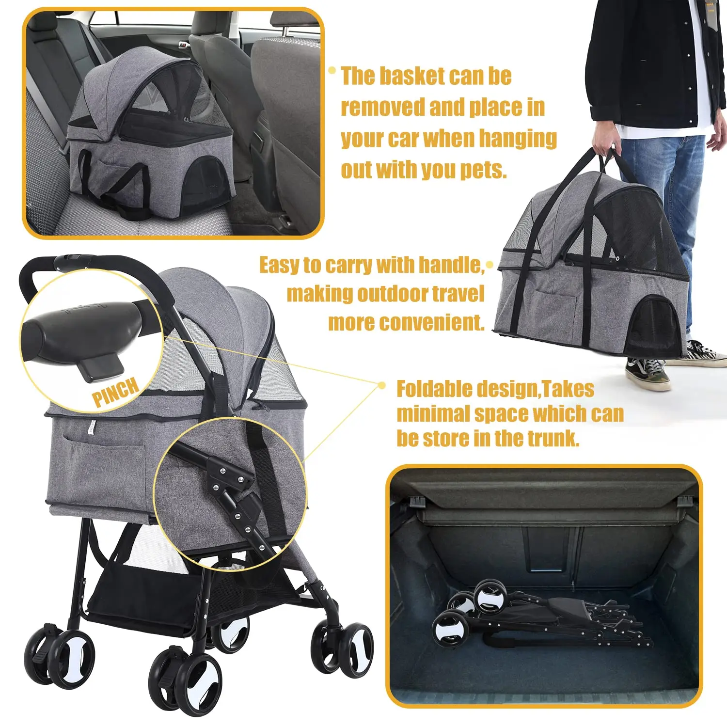 - 【Detachable Carrier】This 3 in 1 pet stroller comes with a detachable basket.It can be taken off easily as a travel carrier. It can also be a car seat when sitting in a car.The frame of this dog stroller for medium dog is foldable, which means it’s easy to store when not needed and perfect for storage at the trunk of your car when hanging out.